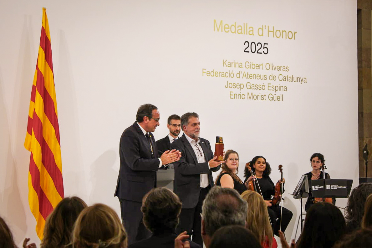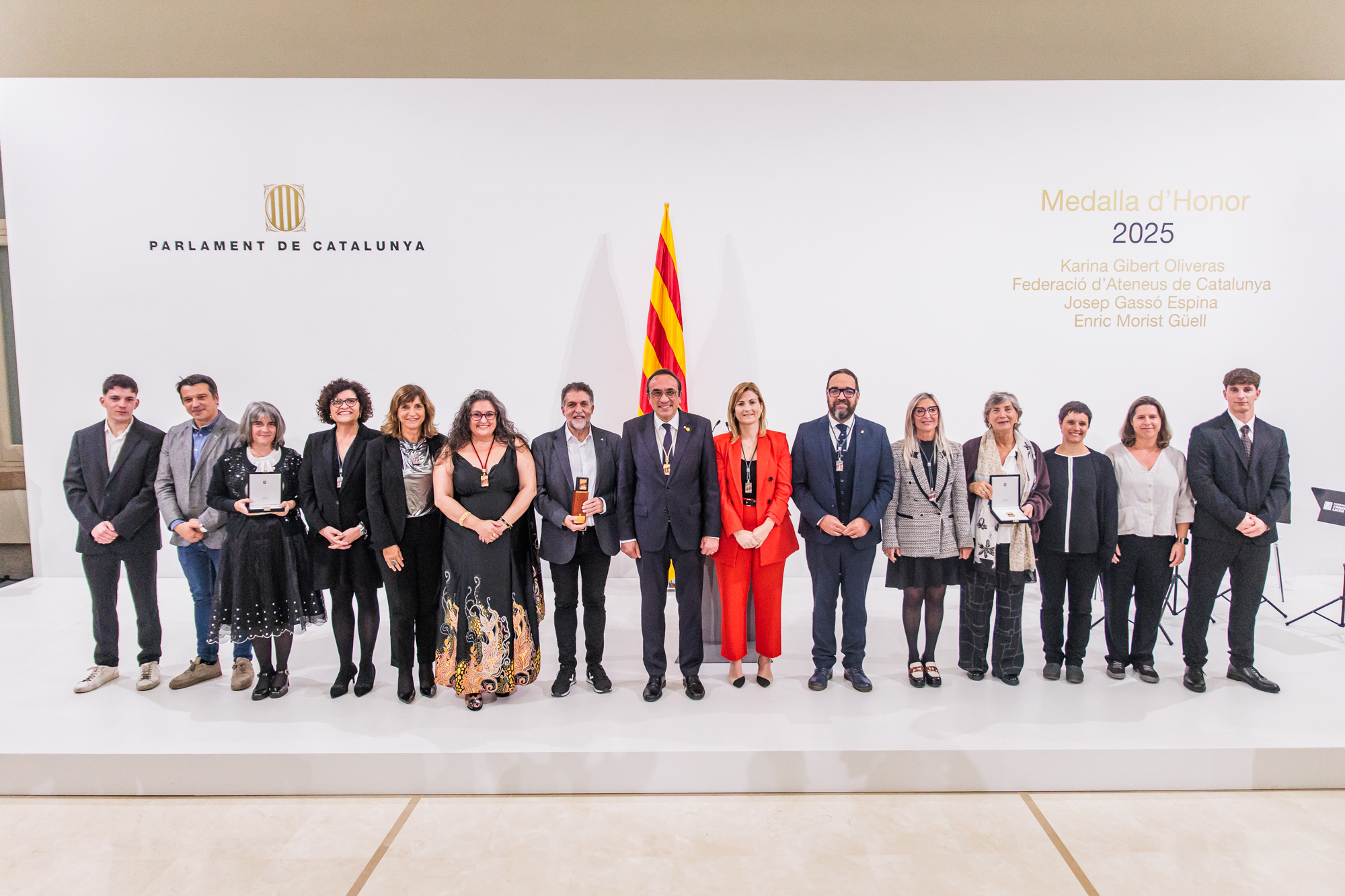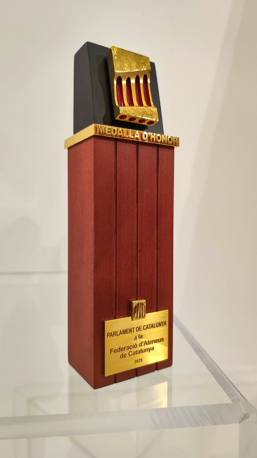 Aquest dimecres, 29 d’octubre, el Parlament de Catalunya ha lliurat la Medalla d’Honor en categoria d’or a la Federació d’Ateneus de Catalunya, en reconeixement a més de quatre dècades de feina dedicades a enfortir la xarxa d’ateneus i associacions culturals del país.