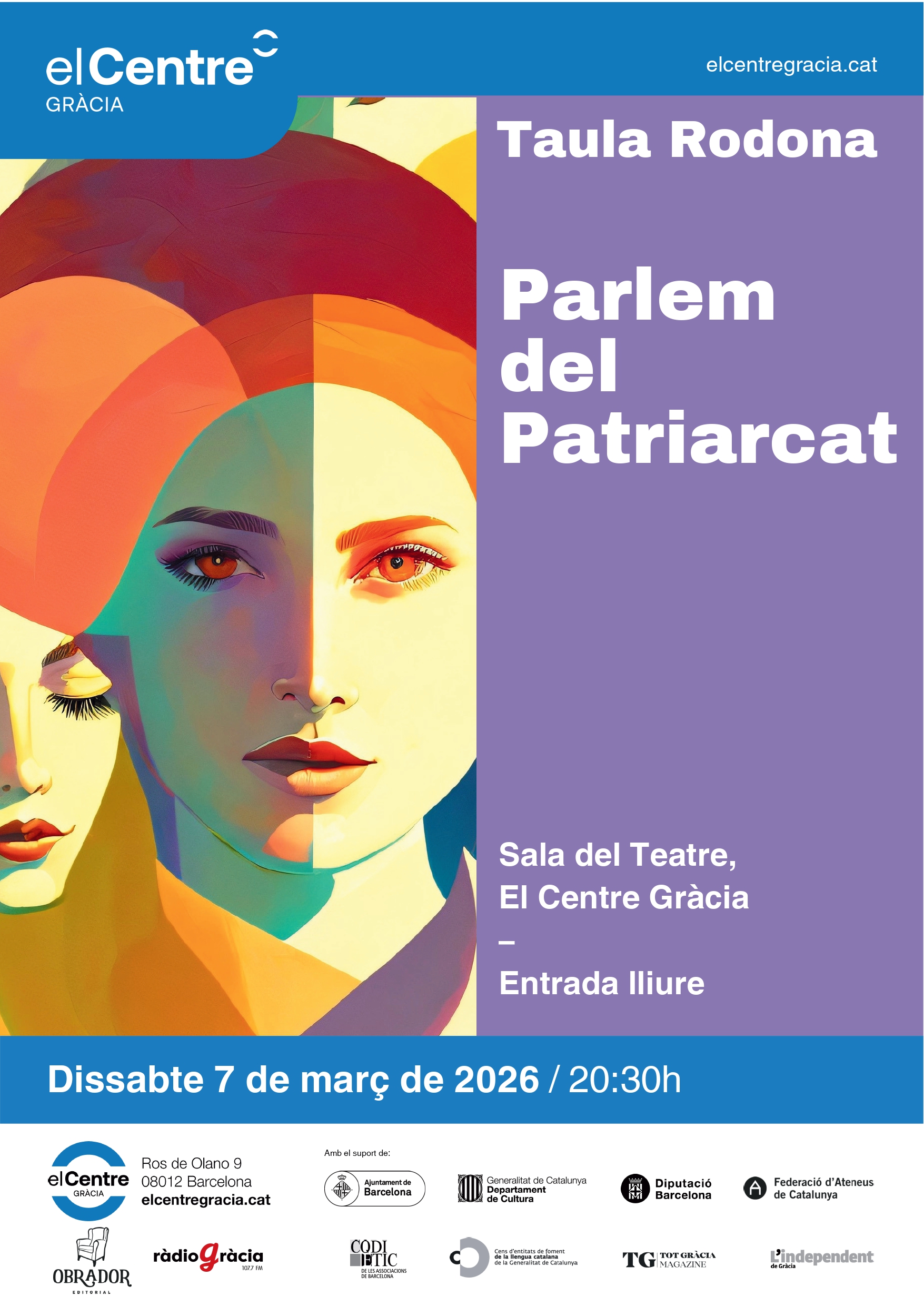 Dissabte, 7 de març, funció especial de l’obra de teatre La casa de Bernarda Alba (18h) i, acte seguit, a les 20.30h, tindrà lloc la taula rodona PARLEM DEL PATRIARCAT, al Centre de Gràcia.